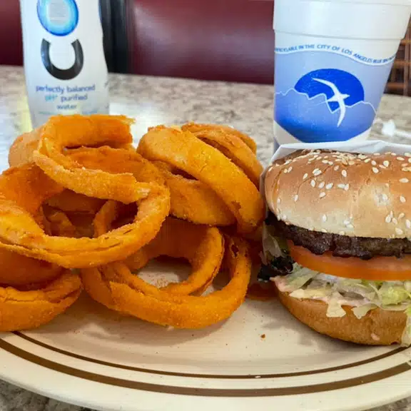 First time here…service was great and burger and my Onion rings were delicious they have patio seating too and you get a free refill on your drinks…heard breakfast here is great too will have to return! Gracias for your great service.